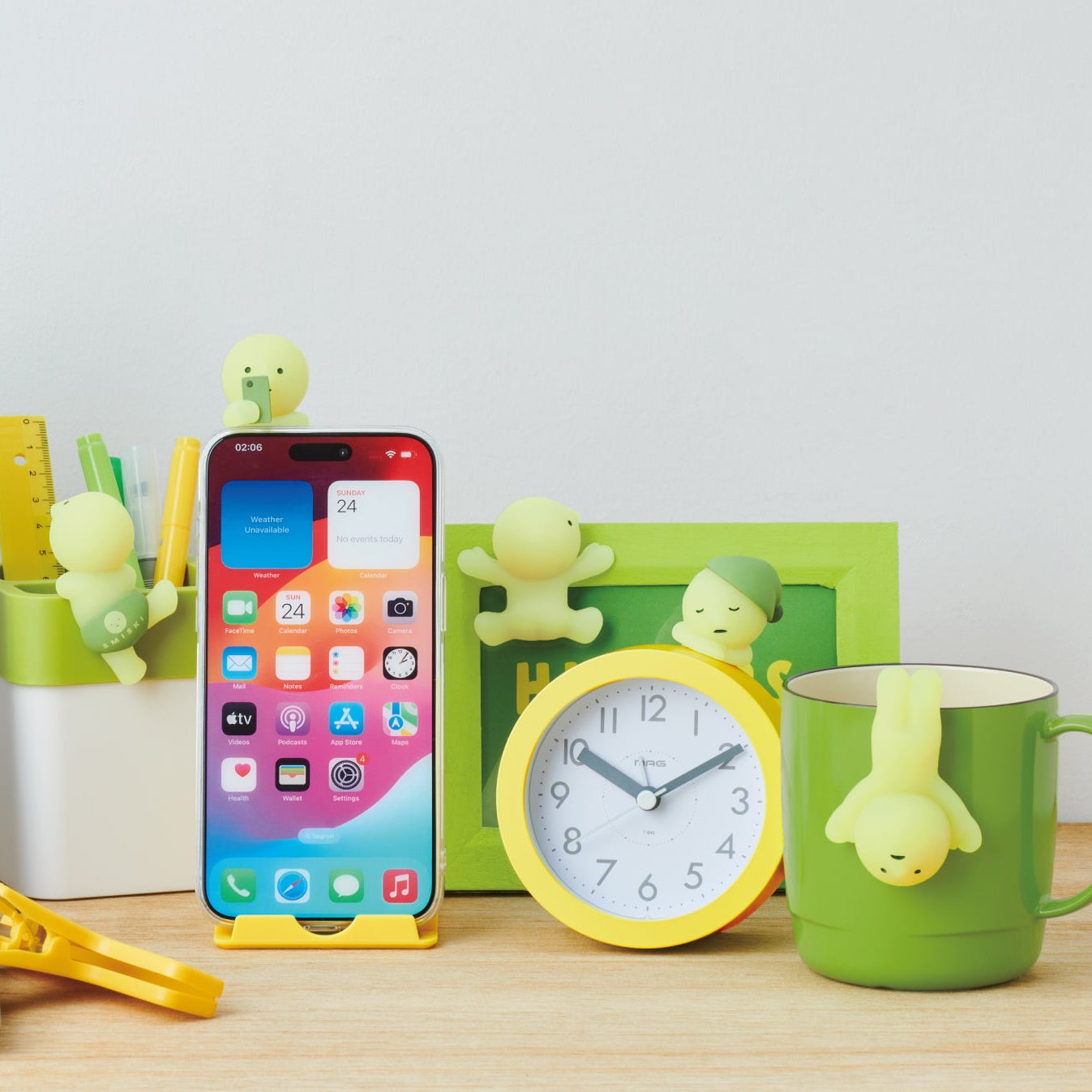 SMISKI’s cute, awkward, glow-in-the-dark figurines come to life in the form of these Hippers – tiny collectible figurines that attach to your phone, laptop, or any flat surface. This collection features SMISKI figures in various poses, from napping to climbing, and can be easily attached to your favourite items thanks to an adhesive strip on the front of each figure. Each Hipper peeks out adorably from behind your devices, adding a whimsical touch to your everyday surroundings.
