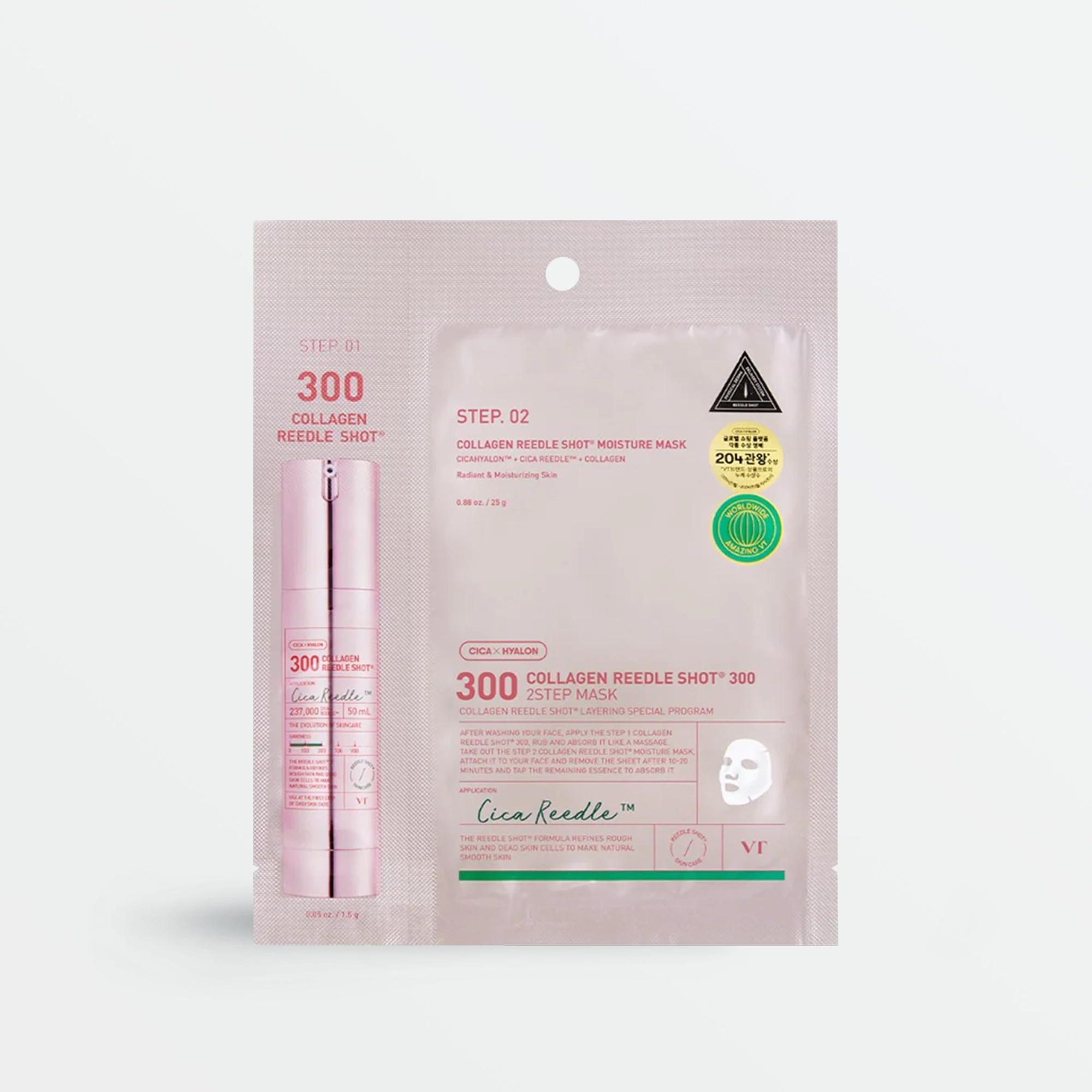 Take your firming and glass-skin routine to the next level with VT’s Collagen Reedle Shot 300 2-Step Mask, an intensive, high-performance treatment designed to visibly improve elasticity, refine pores, and restore a smooth, radiant complexion. Featuring a stronger Collagen Reedle Shot essence paired with a deeply hydrating Collagen mask, this advanced two-step system delivers professional-level care at home for skin that feels firmer, plumper, and more resilient.